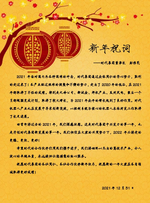 時(shí)代集團(tuán)董事長彭偉民 —發(fā)表新年祝詞